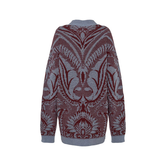 Embroidered wool knit oversized cardigan