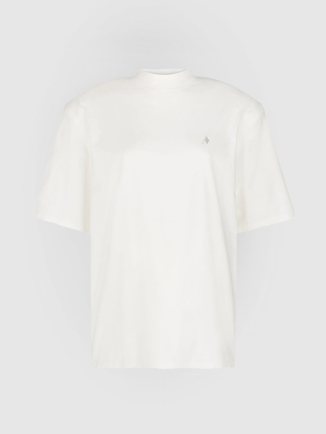 'Kilie' cotton T-shirt with front logo embroidery, high neck, short sleeves, removable padded shoulders.